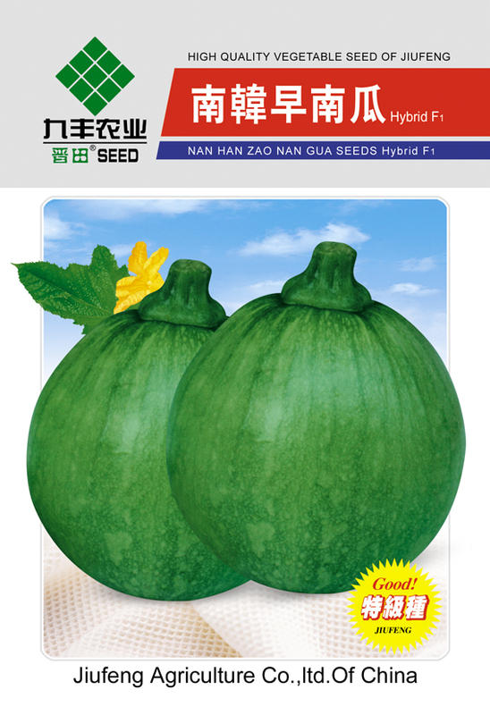 早熟南瓜品种,商品以采嫩瓜为主,嫩瓜近圆形。表皮绿色,单瓜重