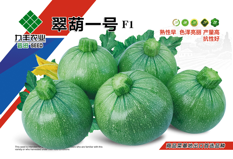最新培育的圆球型高档特色西葫芦新品种,植株生长势较强,分枝少,早熟,第一雌花节位8节左右,出苗38天左右可采收。连续坐果性好,可以同时结瓜3-5个,单瓜重350克左右,近圆球型,果皮翠绿色覆乳白小碎花,色泽亮丽,采收期长,肉质细腻脆嫩,口感明显好于普通直筒型西葫芦品种,抗病性较强。