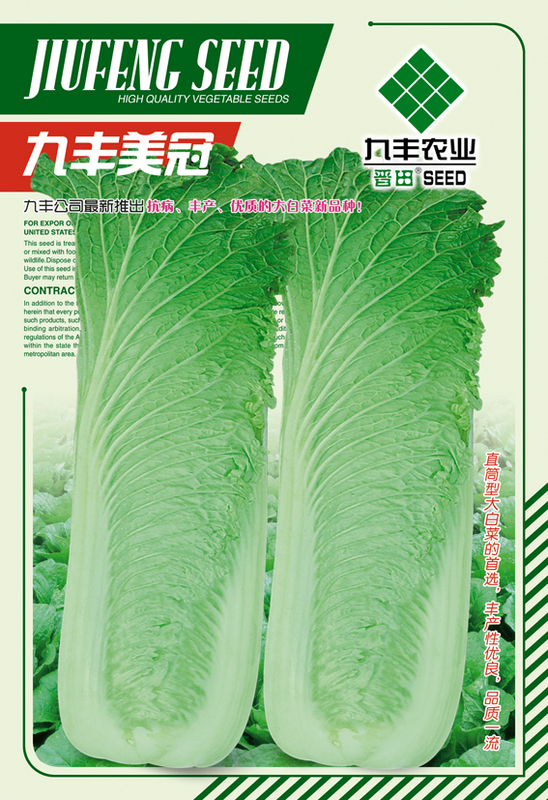 最新培育大白菜杂交种,叶球直筒型,包心紧实,球高56cm左右,外叶深绿色,叶柄浅绿色,叶球重4kg左右,纤维少,品质甜脆。生长期80天左右,较晋菜三号生长势强,高抗病毒病,霜霉病,软腐病,整齐度高,适应性强,是在晋菜三号种植区域推广的最佳品种。