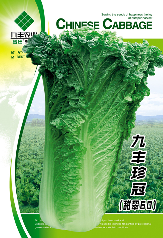 新培育优质早中熟品种,株型直立紧凑,外叶少,结球性特强,叶色深绿,叶柄浅绿色,球顶花心,叶纹适中。整齐度高,球高40cm,单株重2.5-3.0kg,品质鲜嫩。生育期60天左右,对抗病毒病,霜霉病,软腐病抗性强,适应性强,耐贮藏。每667㎡(亩)产净菜4500-6000kg。